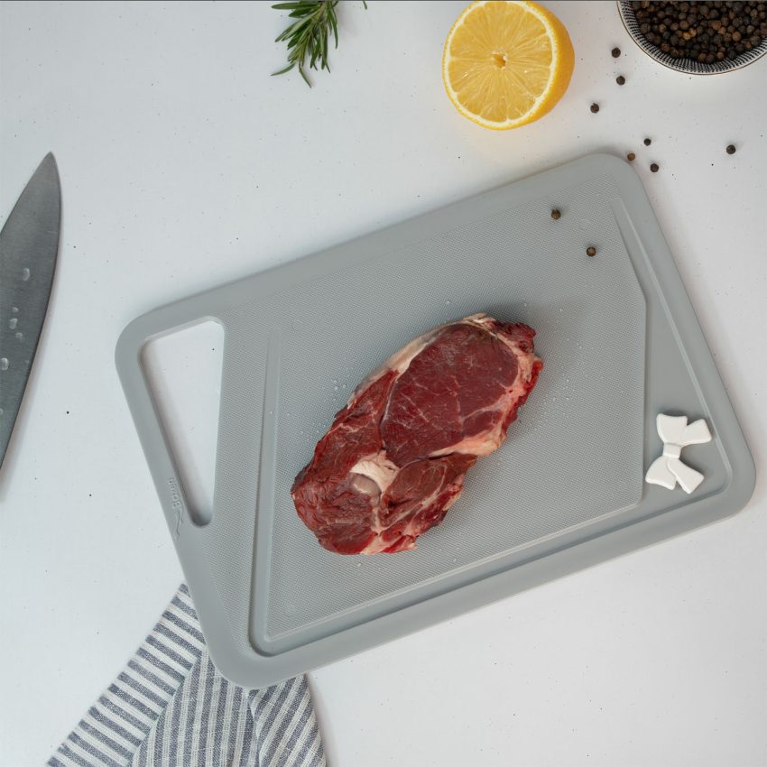 وقتی در حال برش گوشت، مرغ یا حتی میوه و سبزی هستید، هیچچیز آزاردهندهتر از یک تخته لق و ناپایدار نیست؛ چیزی که هم ایمنی کار را پایین میآورد و هم تمرکز شما را بههم میزند. تخته گوشت کوچک لایف، با طراحی پایدار، سطح ضد لغزش و جزئیاتی کاربردی، برای رفع دقیق همین مشکلات طراحی شده است. لبهی این تخته بهصورت کمی گود و با شیب ملایم طراحی شده تا مایعات حاصل از برش مواد غذایی مانند گوشت یا گوجهفرنگی به اطراف پخش نشود و به یک سمت هدایت شود. این ویژگی، هم به تمیز ماندن سطح کار کمک میکند و هم روند برش را سریعتر و راحتتر میسازد.