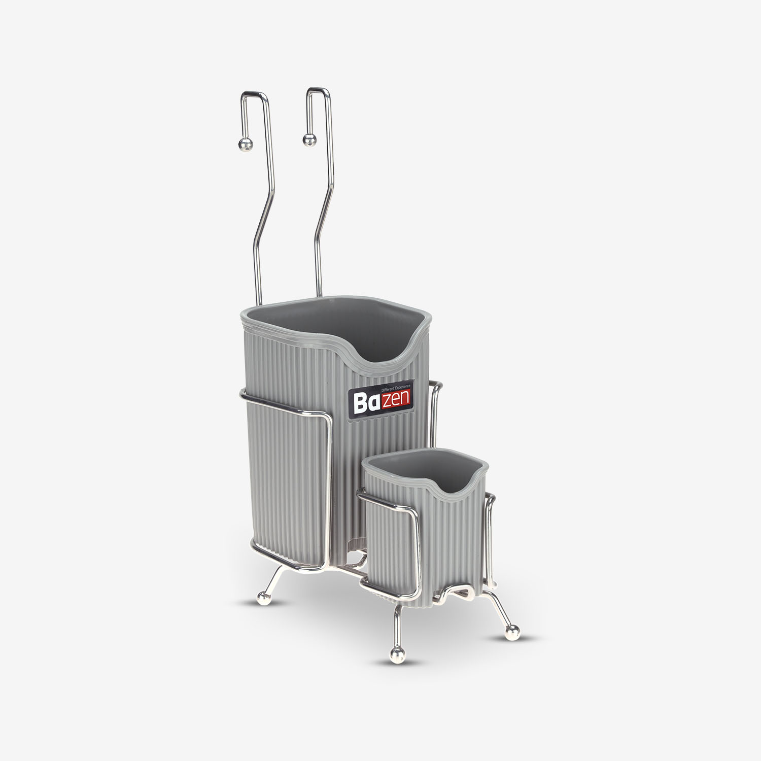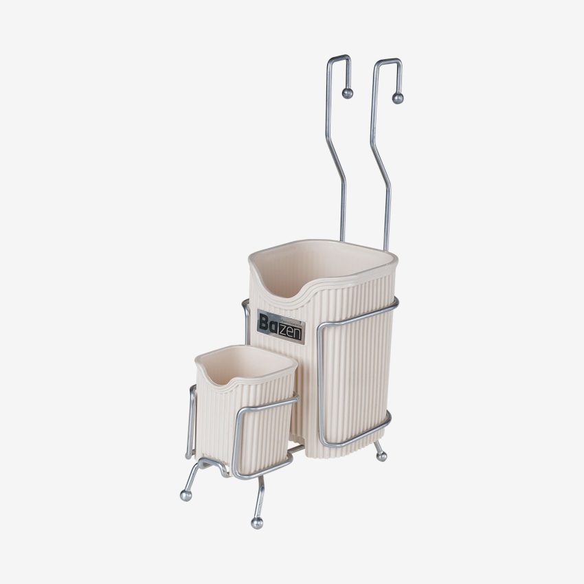 بخش بزرگ‌تر نیز فضای کافی برای نگهداری قاشق، چنگال، کفگیر، ملاقه و سایر وسایل آشپزی روزمره دارد. این جا قاشقی قابلیت آویزان شدن از آب‌چکان را دارد و همچنین می‌تواند روی لبه سینک یا کنار محل شست‌وشو قرار بگیرد. ارتفاع مناسب و طراحی تفکیک‌شده، استفاده از آن را کاربردی‌تر و مرتب‌تر می‌کند. ترکیب دو بخش مجزا در این مدل، نگهداری قاشق‌ها را راحت‌تر و منظم‌تر می‌کند.