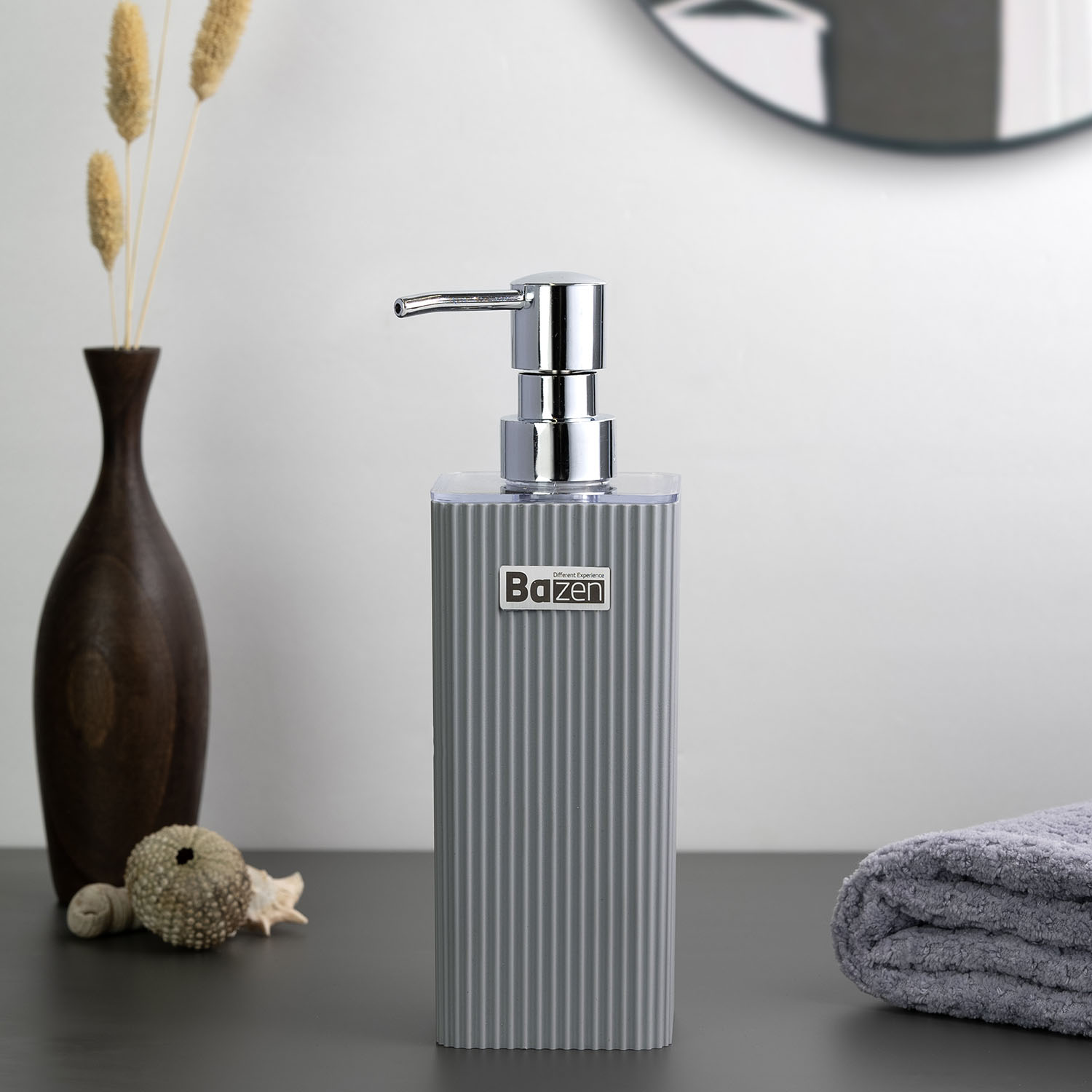 جا مایع چهارگوش گرافیک بازن فراتر از یک وسیلهٔ کاربردی ساده است — ترکیبی از عملکرد دقیق و زیبایی مدرن. طراحی شیارهای عمودی و پمپ روان و بدون چکه، استفاده روزمره را راحت میکند، در حالی که ظاهر کروممانند و بدنهٔ مینیمال آن، هماهنگی زیبایی با دکور سرویس بهداشتی یا آشپزخانه ایجاد میکند. این محصول در دو سایز کوتاه و بلند عرضه شده تا با هر فضا و نیاز روزمرهای سازگار باشد.