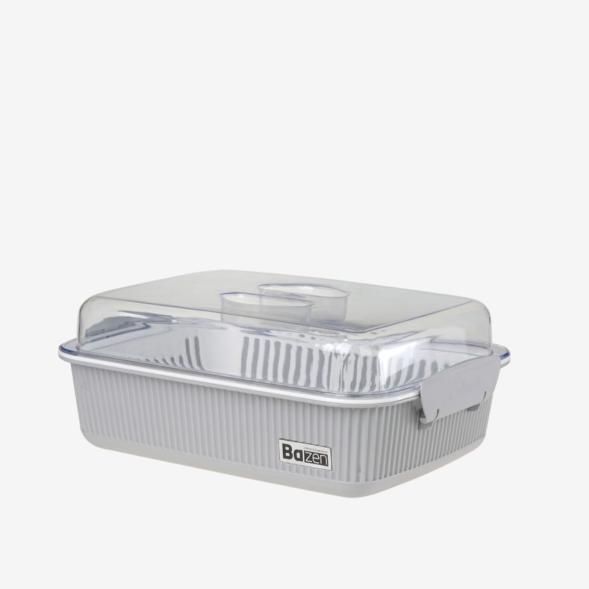 نان وقتی تازه میماند که هوا جریان داشته باشد، درب بهدرستی چفت شود، و همهچیز سر جای خودش باشد — درست مثل آنچه در جانانی گرافیک بازن میبینی.این محصول از سه بخش تشکیل شده: بدنهی اصلی، سبد داخلی مشبک و درب شفاف.سبد داخلی با فاصله دادن نان از کف ظرف، به جریان هوا کمک میکند و از عرقکردن و خیسشدن نان جلوگیری میکند.قفلهای جانبی محکم، درب را کاملاً روی بدنه فیکس نگه میدارند؛ و دستگیرهٔ بالای درب، باز کردن آن را حتی با یک دست آسان میکند.