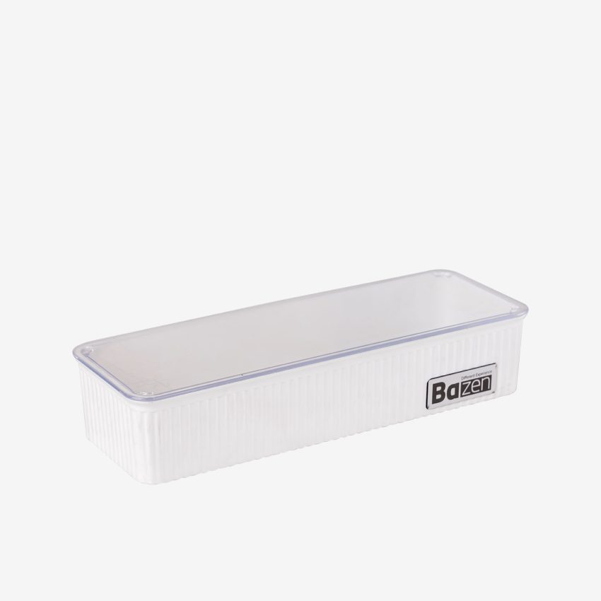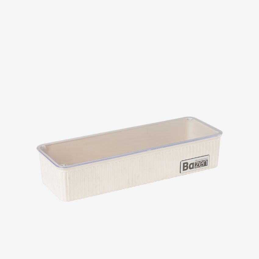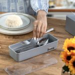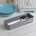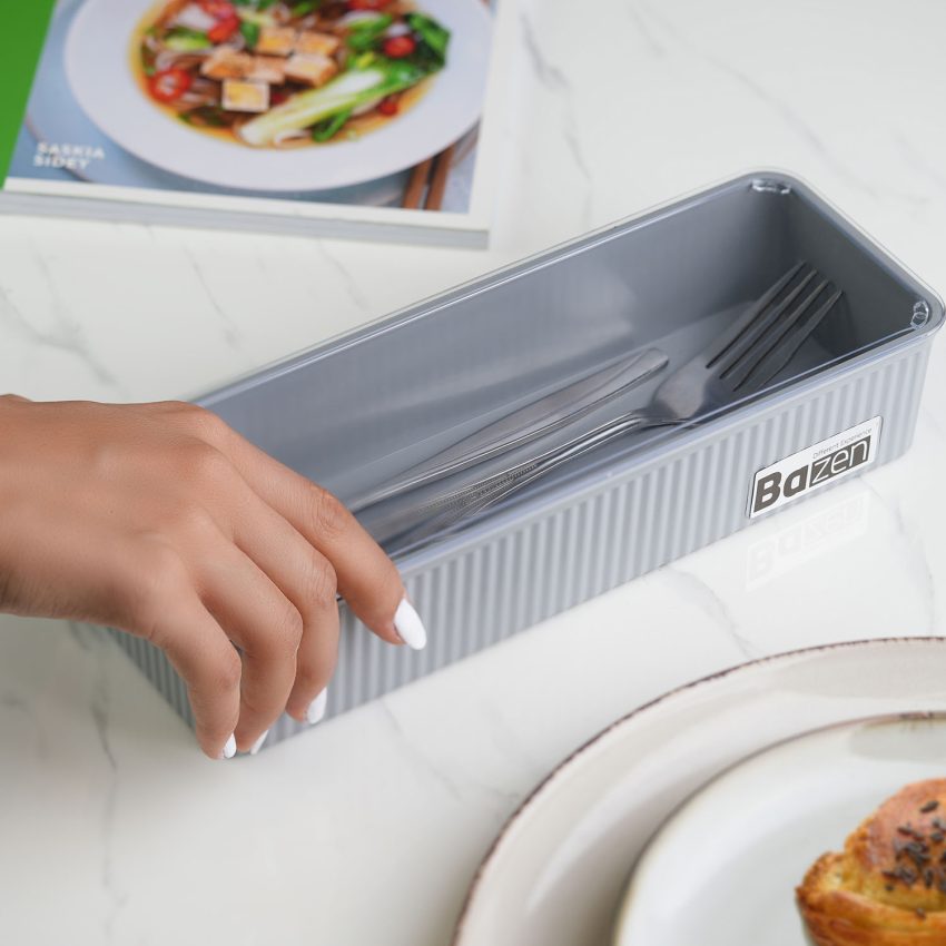 برای مرتب نگهداشتن قاشق، چنگال و دیگر لوازم کوچک آشپزخانه، داشتن یک جاقاشق چنگال مناسب کاملاً ضروریست.جاقاشق و چنگال گرافیک بازن با طراحی مستطیلی و درب شفاف، امکان استفادهی راحت و بهداشتی را فراهم میکند و از پخش شدن لوازم داخل کشو یا روی کانتر جلوگیری میکند.ابعاد مناسب و فرم سادهاش باعث میشود بتوان آن را هم روی میز قرار داد، هم داخل کابینت یا کشوی آشپزخانه.