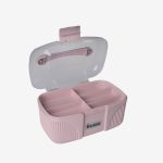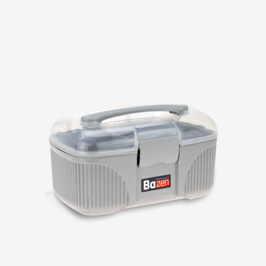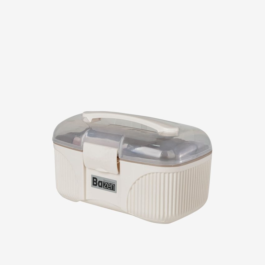 قفل مقاوم، درب را محکم سر جای خود نگه می‌دارد و مانع از باز شدن ناخواسته در هنگام جابه‌جایی می‌شود.همچنین، دستگیره‌ی بالای درب، حمل آن را مثل یک کیف دستی راحت کرده است.چه برای استفاده روزمره در خانه، چه برای بردن در سفر یا کلاس خیاطی، این جعبه جمع‌وجور و دقیق، همیشه آماده است. برای اطلاعات بیشتر با کارشناسان فروشگاه اینترنتی بازن تماس بگیرید.