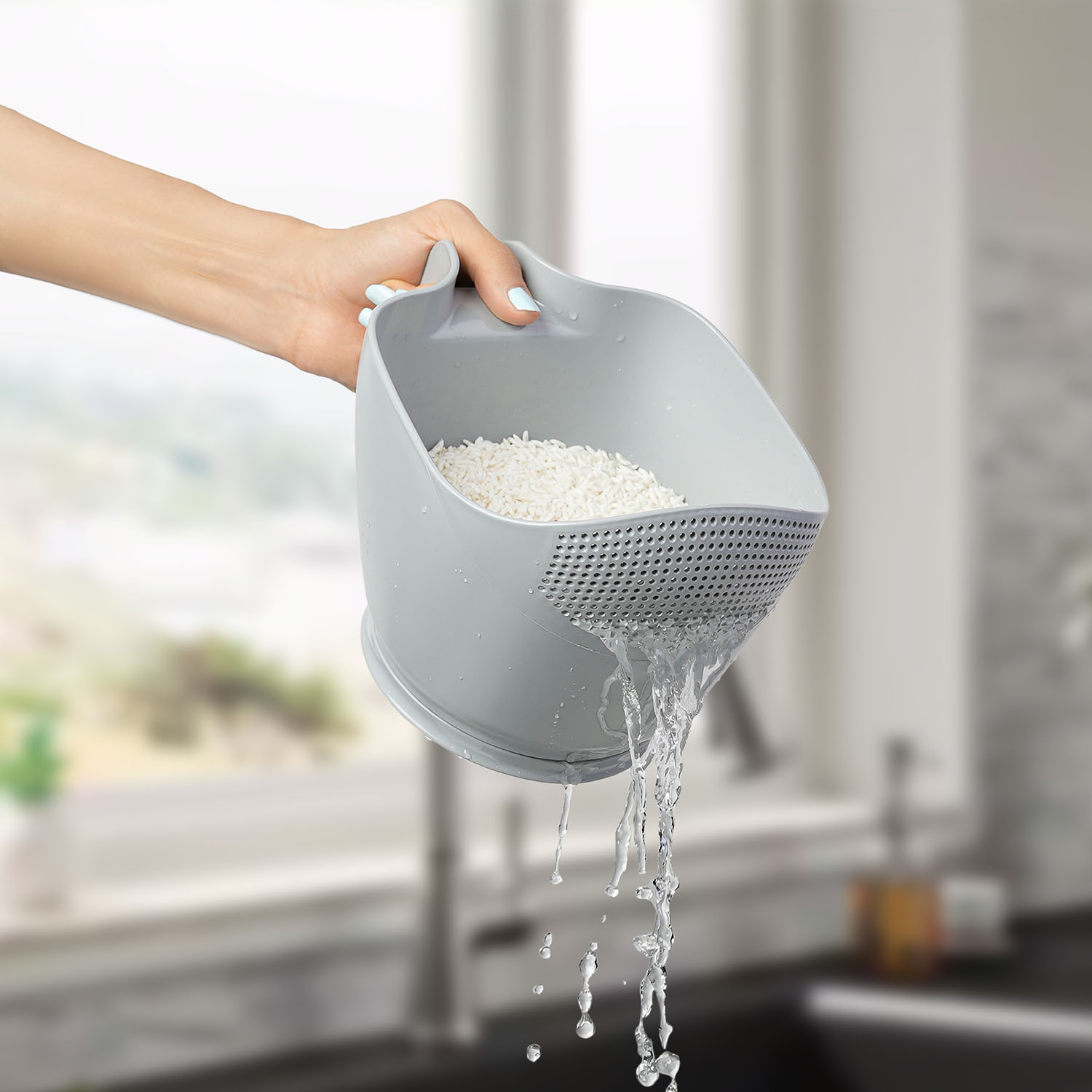 همیشه موقع آبکش‌کردن برنج، نگران ریختن دونه‌ها داخل سینک بودین؟ ست برنج شوی لایف، دقیقاً برای رفع همین دغدغه طراحی شده. با طراحی نیم‌دایره‌ای خاص و سوراخ‌هایی که به‌صورت دقیق و استاندارد روی بدنه قرار گرفته‌اند، این محصول اجازه می‌دهد آب به‌راحتی خارج شود، بدون اینکه دانه‌ای از برنج یا حبوبات همراه آن بیرون بریزد.