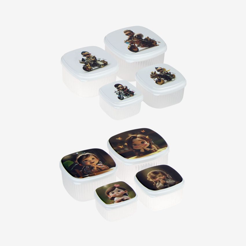 فرم مربعی این مدل باعث میشود فضای یخچال یا فریزر بهینهتر استفاده شود، و هر ظرف را میتوان بهراحتی برای گرمکردن غذا (بدون درب) در مایکروویو قرار داد.این ظروف برای استفاده در خانه، محیط کار، مهد کودک یا مدرسه کاربرد دارند و طرحهای کودکانه و گرافیکی متنوع روی درب آنها، هم برای بچهها جذاب است و هم برای بزرگترها خوشایند و قابل استفاده.