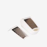 رنده دوکاره گرافیک بازن با داشتن دو تیغه با سایز ریز و درشت، انتخابی کاربردی برای آمادهسازی سریع انواع مواد غذایی در آشپزخانه است. تیغهها از فلز باکیفیت ساخته شدهاند و با برندگی مناسب، بدون فشار اضافه کار میکنند و در استفادههای مکرر کند نمیشوند. محفظهی تعبیهشده در زیر رنده، مواد رندهشده را جمع میکند تا آشپزی تمیز و راحتی داشته باشید.
